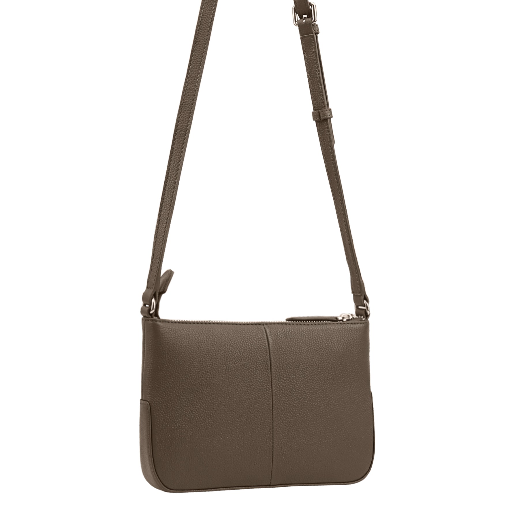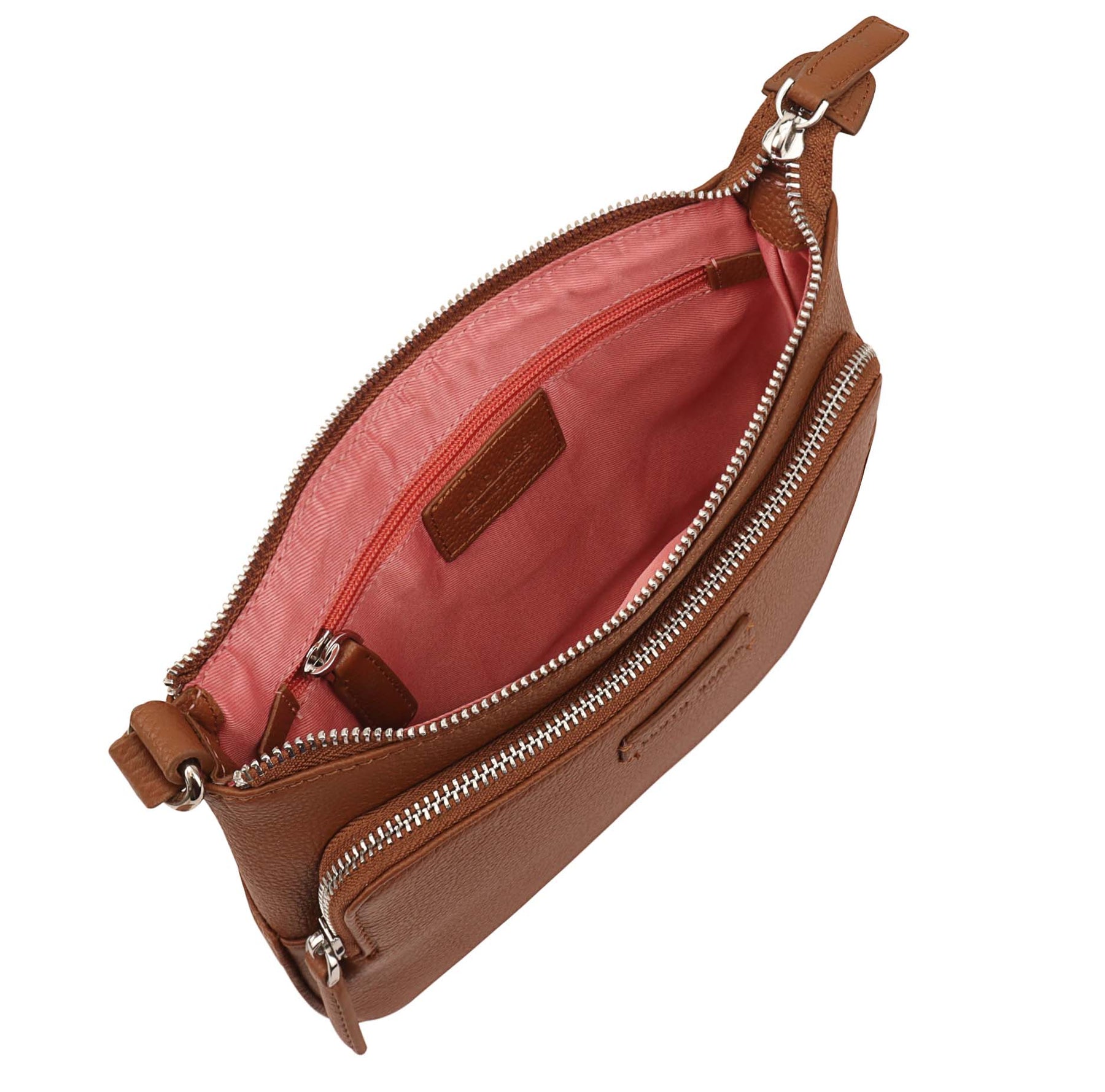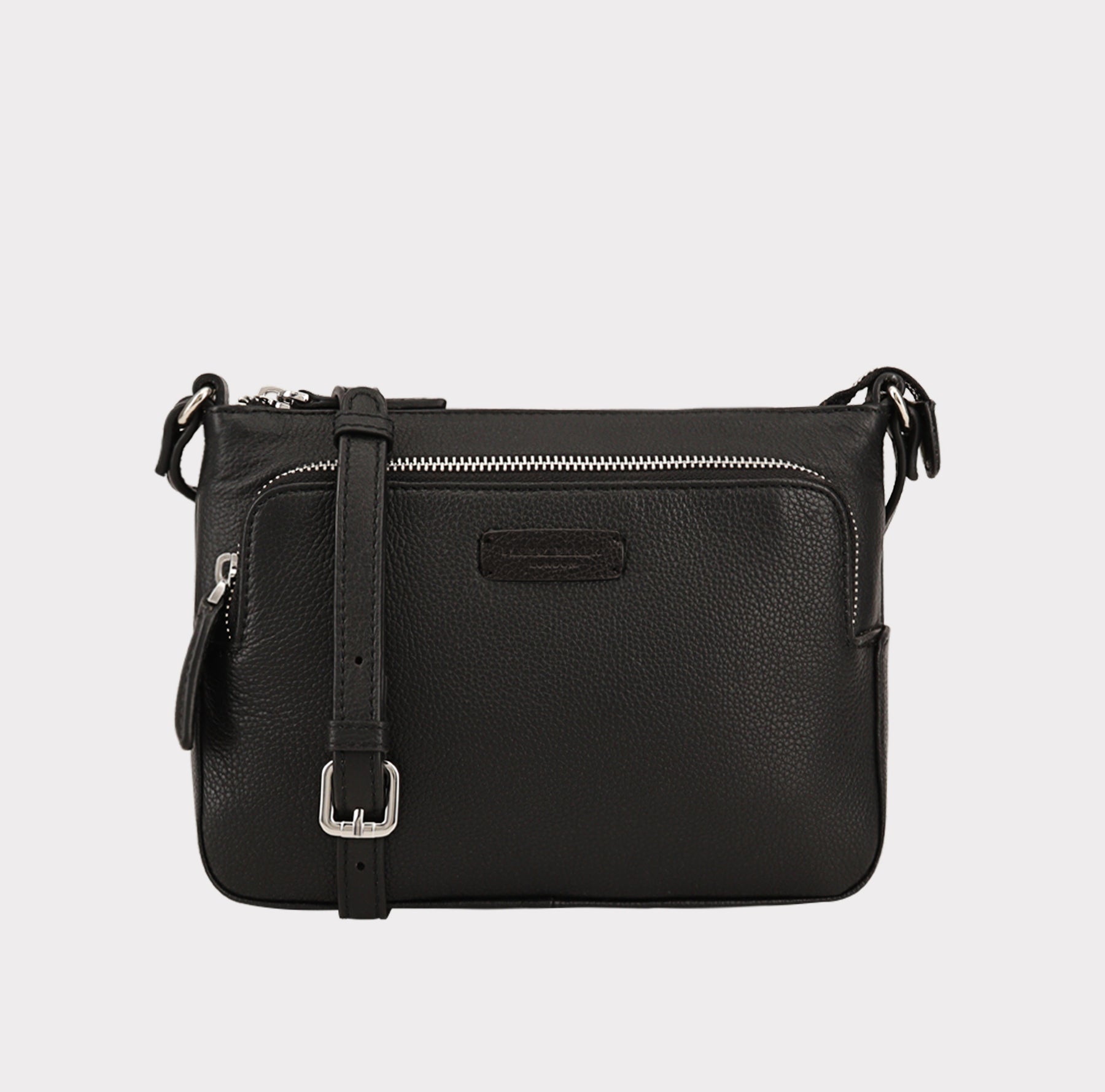Our stylish crossbody bag DEVAL, features a convenient and secure top zip closure, along with a front full sized zipped pocket, perfect for quick-grab essentials like keys or phone, while its interior zip pocket keeps your valuables organized.