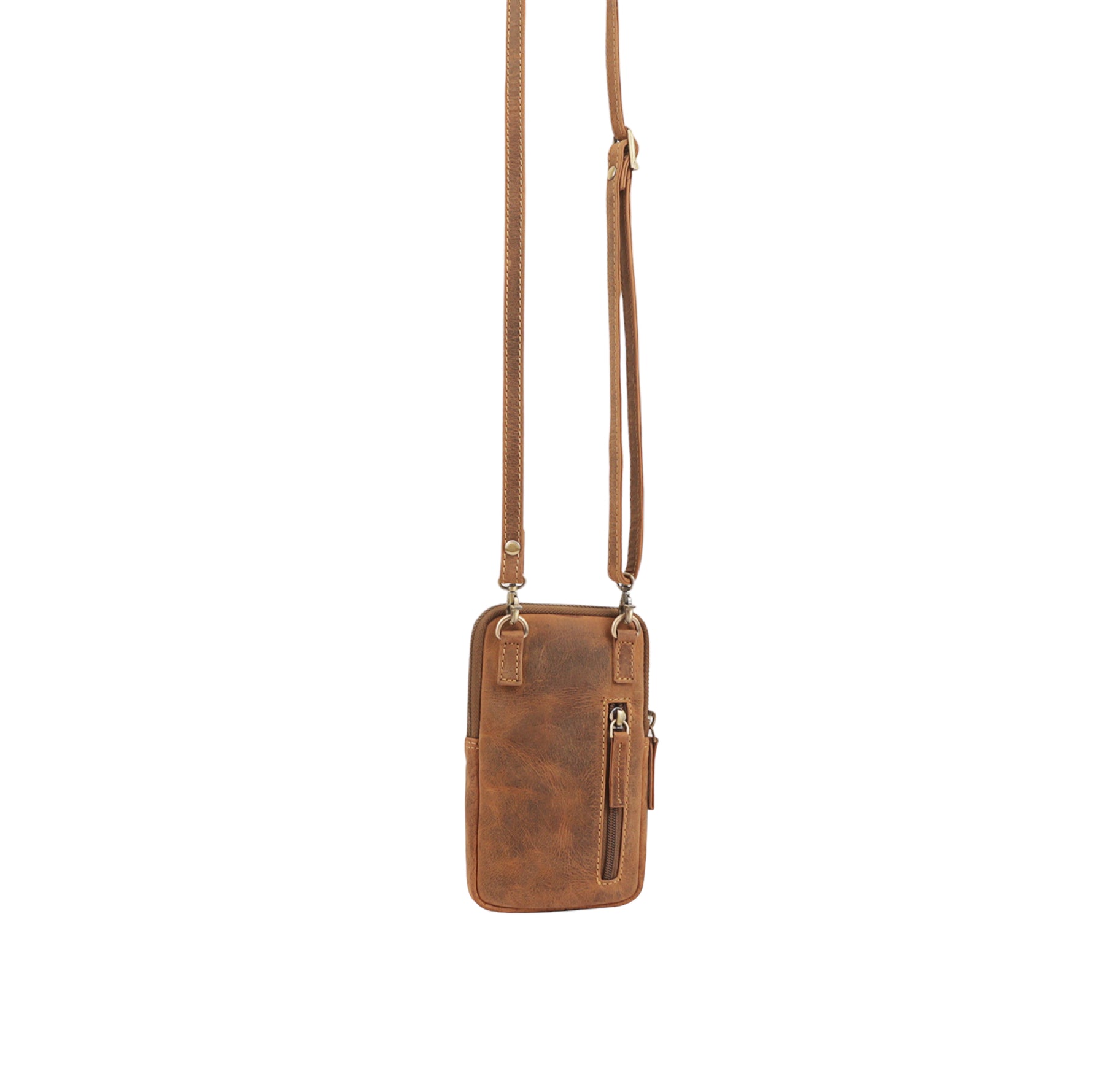 The GERALD distressed leather phone bag – an embodiment of rugged elegance and urban flair. Carefully crafted from exquisitely distressed leather, the GERALD phone bag stands out as a bold accessory for the modern adventurer. The weathered aesthetic not only adds character but also tells a story of journeys taken and memories made. Compact yet surprisingly spacious, this bag is designed to hold your phone, cards, and essentials with ease. The thoughtfully arranged interior, combined with a secure closure and adjustable strap ensures practicality without compromising on style. The distressed leather not only exudes a sense of authenticity but also promises resilience, evolving over time to become uniquely yours.